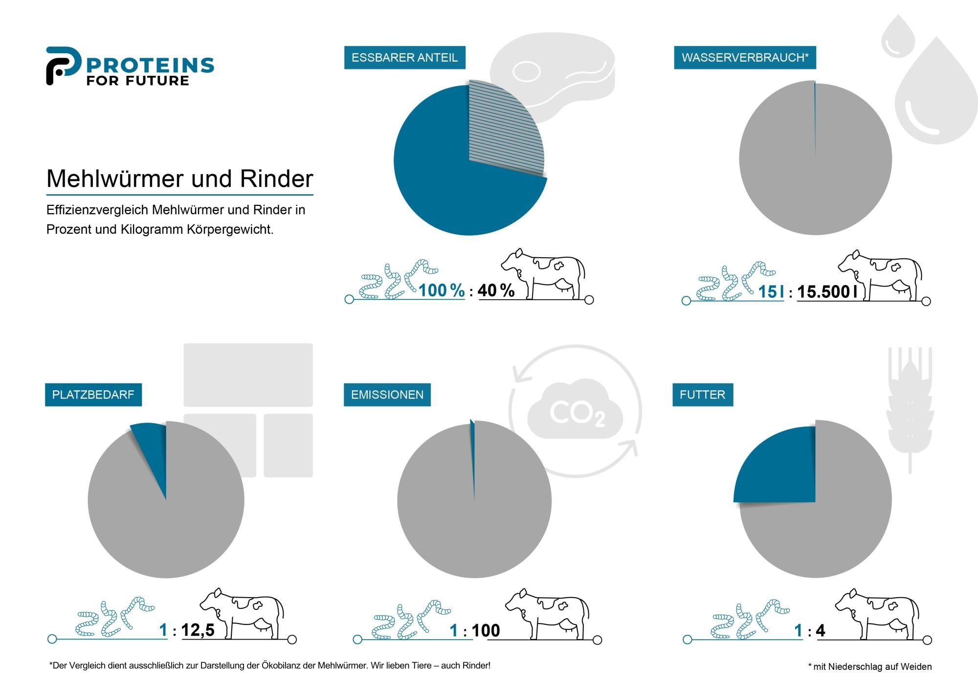 - Raumschonend, da die Insektenzucht wesentlich weniger Platz benötigt als die Fleisch- oder Getreideproduktion