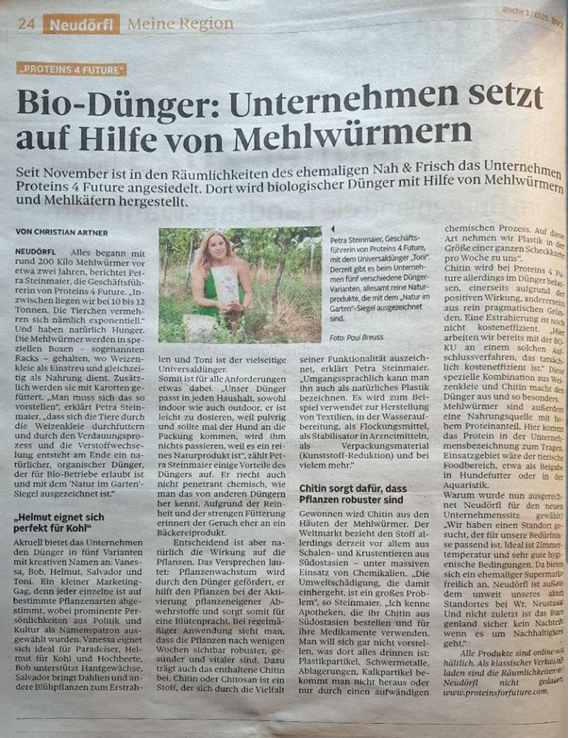 Am 2. Jänner 2025 veröffentlichte das BVZ einen Artikel über Proteins for Future und deren Produkte. Lesen Sie den ganzen Bericht online.